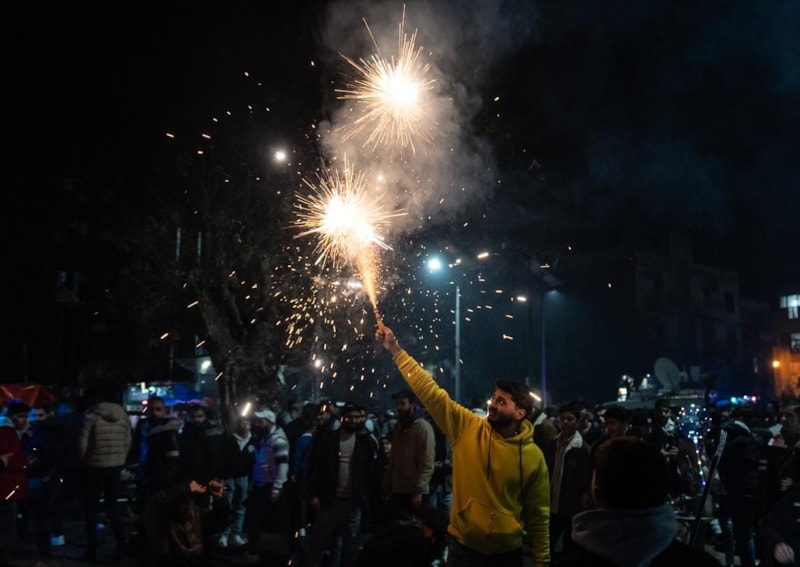 Saatler gece yarısına geldiğinde meydanda havai fişek atılması Suriyelilerin sevinç çığlıklarıyla karşılandı. Meydanda toplananlar bu anları cep telefonlarıyla kaydetti.