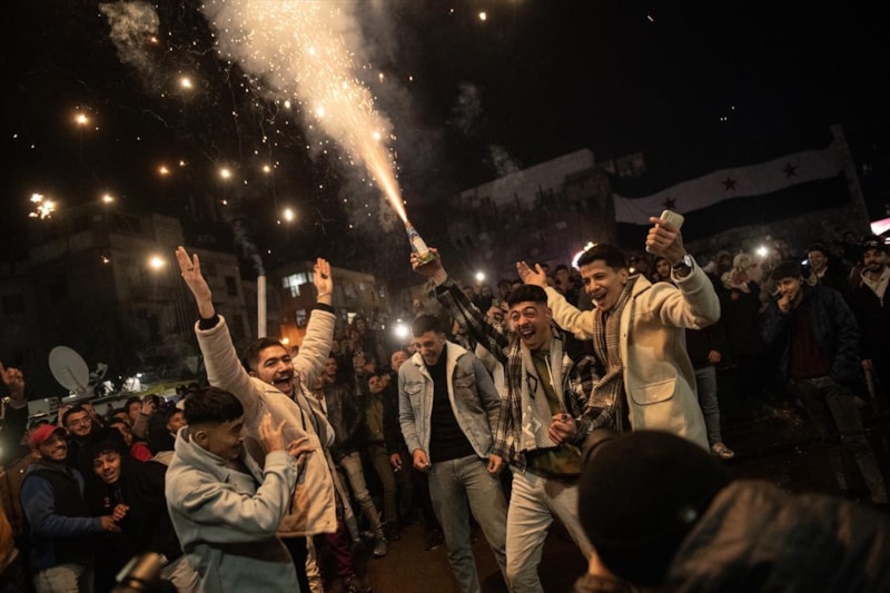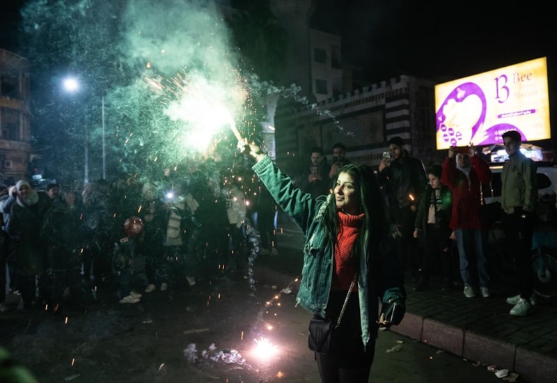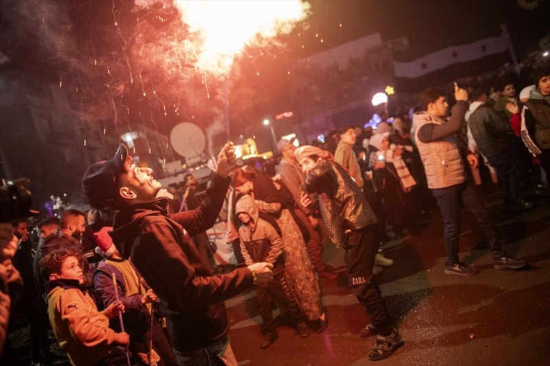 Suriyeliler, başkent Şam'da hem Beşşar Esed rejiminin yıkılmasını hem de yeni yılı sevinç ve coşku içinde kutladı.