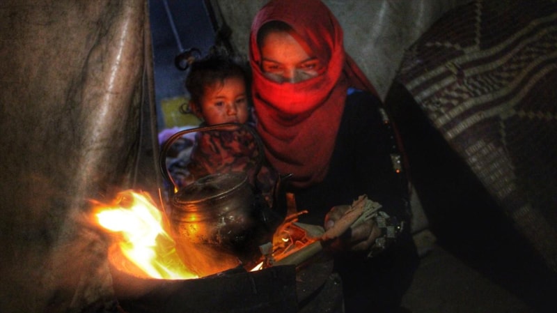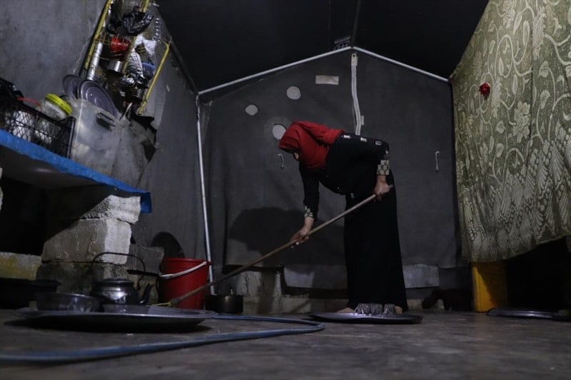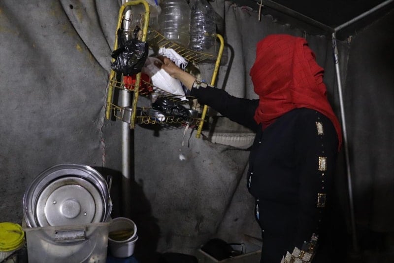 Eve ekmek almakta zorlandığını söyleyen Menfi, topladığı naylon ve kartonları yakarak ısınmaya çalıştıklarını anlattı.