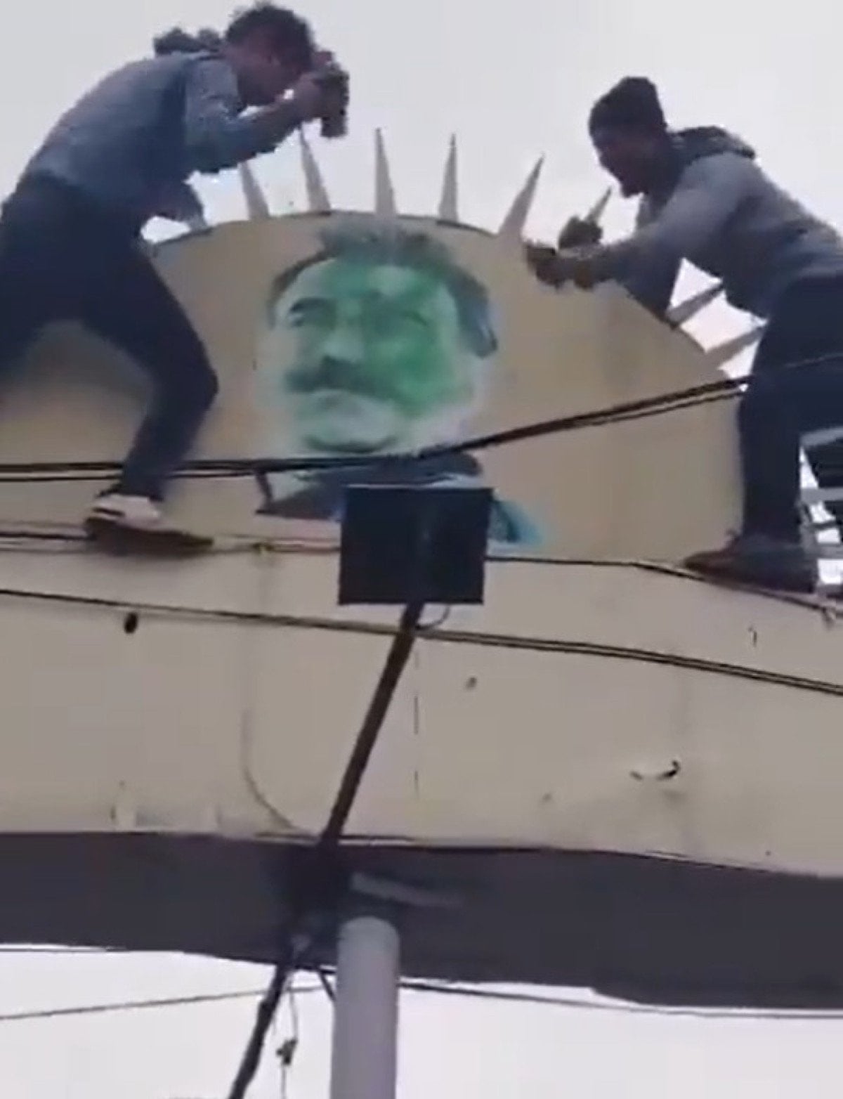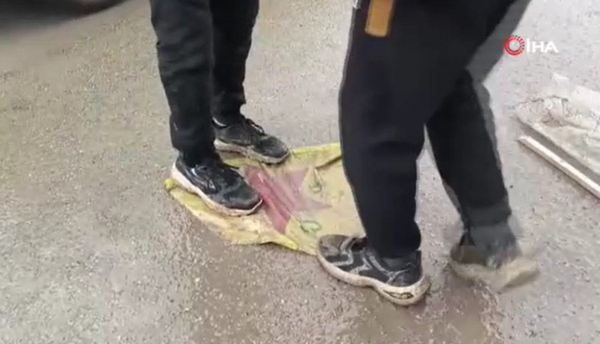 Daha sonra şehirde bulunan SDG'nin heykellerini yıkan halk, teröristlere ait afiş ve paçavraları da yırtıp yerde ayaklarıyla ezdi..