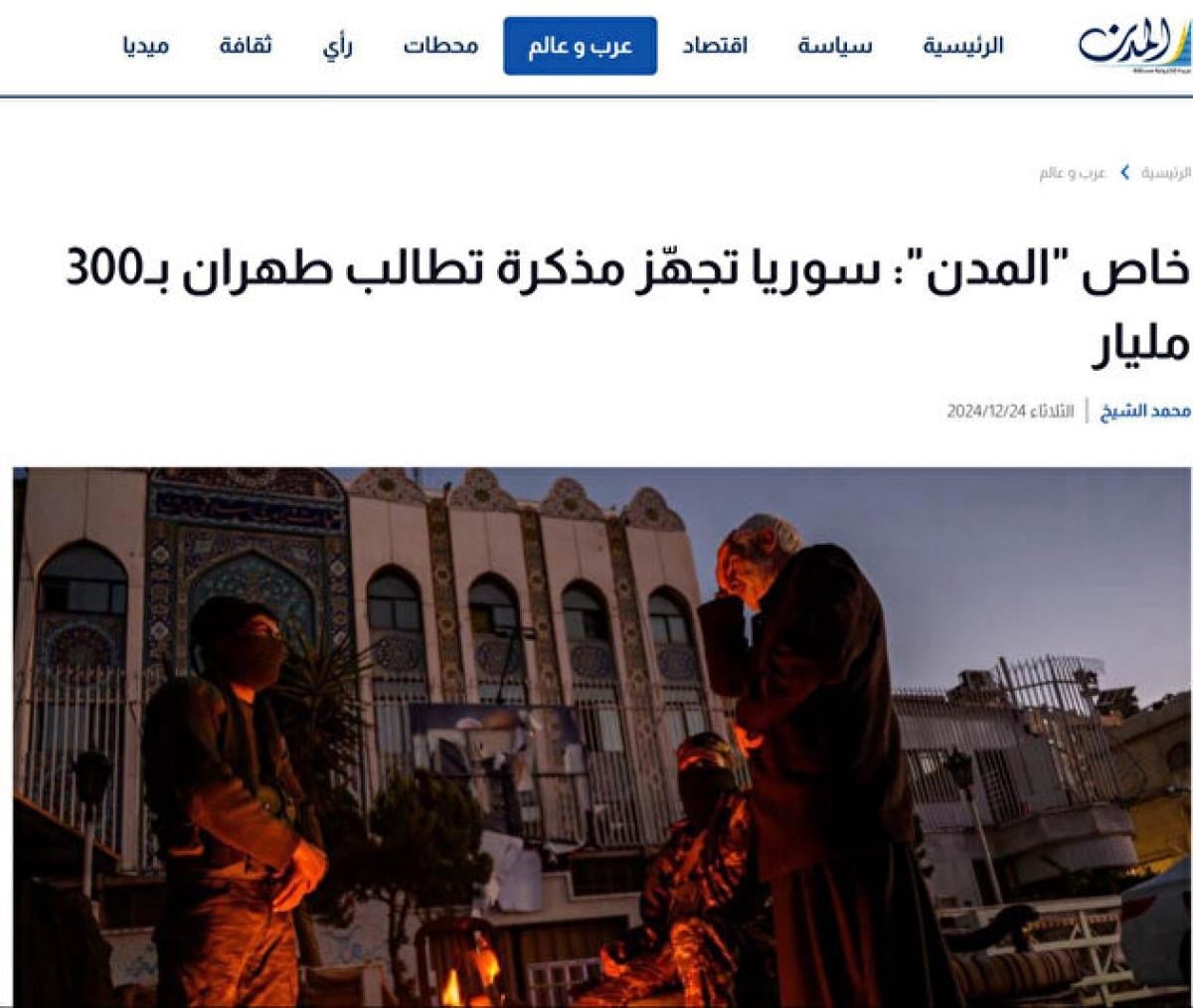 Lübnan'ın El-Modon gazetesinde yayınlanan habere göre, Suriye'nin yeni yönetimi, uluslararası mahkemeler aracılığıyla İran'dan 300 milyar dolar tazminat talep etmeye hazırlanıyor.