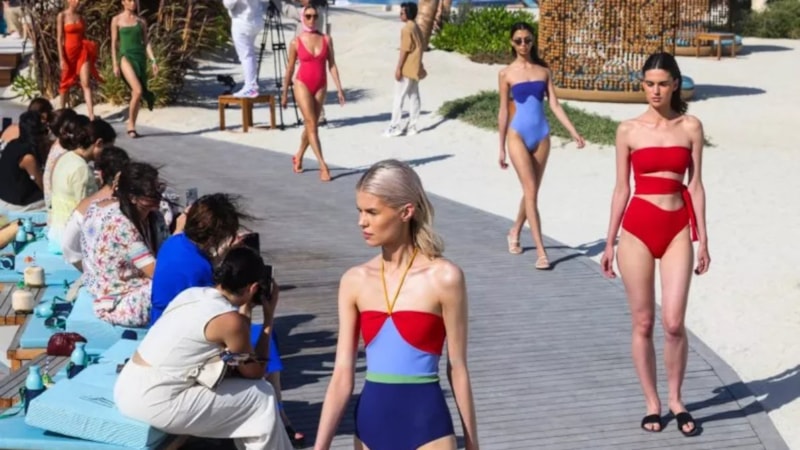 Riyad yönetiminin dönüşüm hamlelerine mayo defilesi eklendi. Mayoları tasarlayan modacı, "Suudi Arabistan çok muhafazakar ama biz şık mayoları gösterdik" dedi.