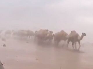 Hava şartları nedeniyle çölde yaşayan develer de bölgeden uzaklaştırıldı. Paylaşılan videoda ise bir adamın onlarca deveyi hızlı bir şekilde sürüklediği görülüyor.