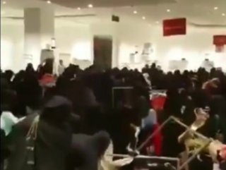 Alışveriş çılgınlığı kapsamında bir mağazaya koşturarak giren Suudi kadınları, askılarda, vitrinlerde ne var ne yoksa hepsini birkaç saniye içerisinde toplayıp mağazayı talan etti.