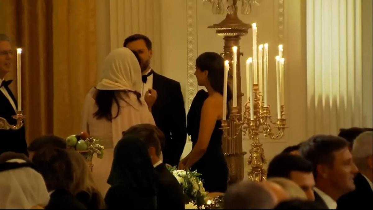 - Suudi Arabistan'ın ABD Büyükelçisi Prenses Rima bint Bandar bin Sultan, ABD Başkan Yardımcısı JD Vance ile yanaktan öpüşerek selamlaştı.