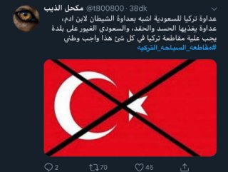 Birçok düşmanca mesajın içerdiği paylaşımları yapan Suudiler, "Türk mallarını kullanmayın" , "Selman'ın düşmanı bizim de düşmanımız" gibi mesajlar yayınlıyor.