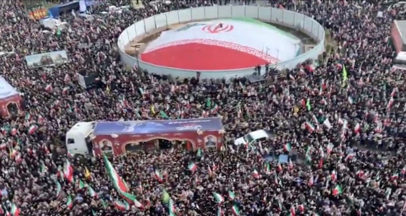 İran'ın başkenti Tahran'da Devrim Muhafızları Ordusu Deniz Kuvvetleri Komutanı Ali Rıza Tengsiri ve diğer personeller için cenaze merasimi gerçekleştirilirken halk meydanları doldurdu.