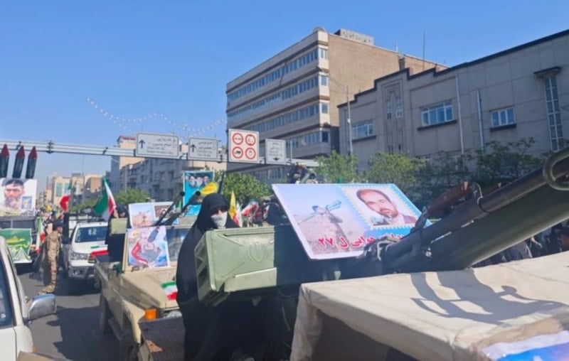Gösteride, araçların üzerine yerleştirilen çift namlulu uçaksavarlar, ağır makineli tüfekler ve çok namlulu roketatar sistemleri sergilendi. Katılımcılar, İran ve Hizbullah bayrakları taşıyarak sloganlar attı.