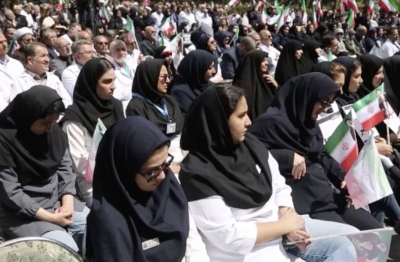 Savaşın ne kadar süre daha devam edeceği belirsizliğini korurken Tahran'da doktorlar ve tıp öğrencileri, sağlık merkezlerinin vurulmasına tepki gösterdi.