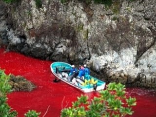 Japonya'nın Taiji isimli kötü şöhretli koyu, bu sene de binlerce kılavuz balinanın ve yunusların katliamına sahne oldu.