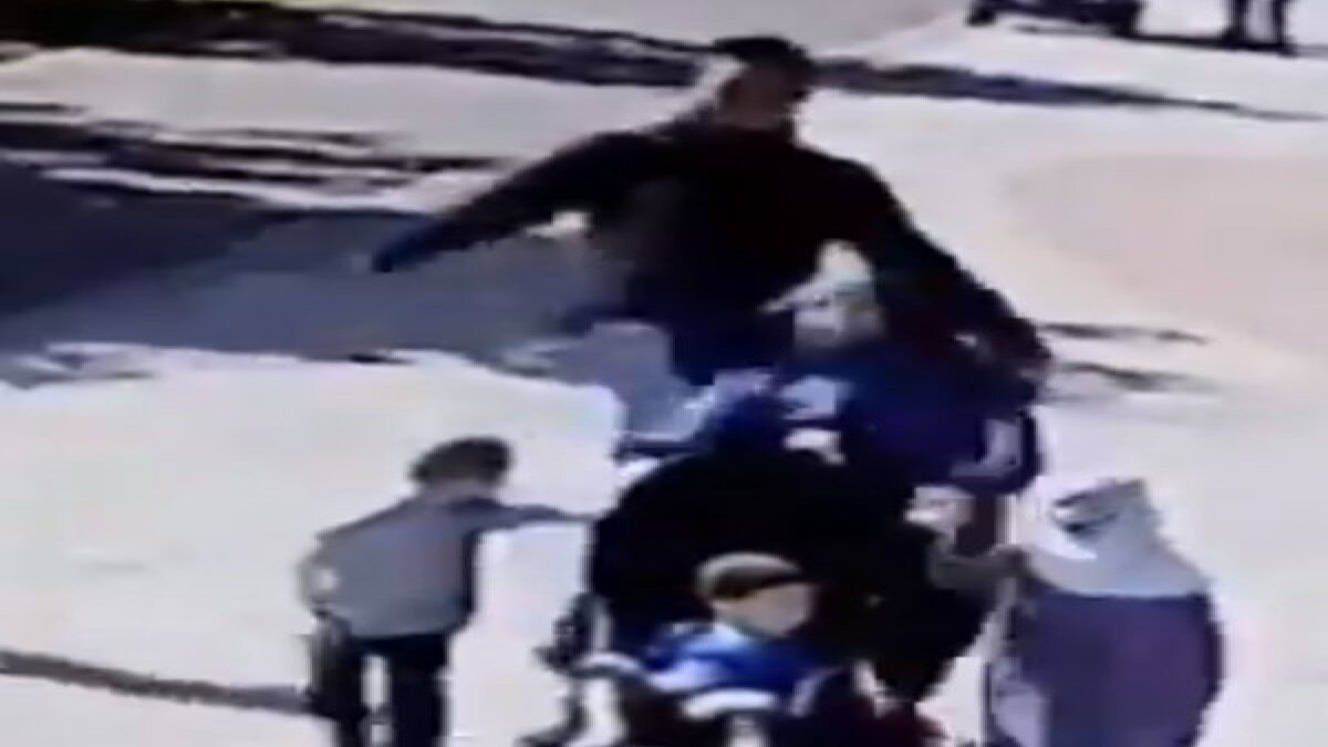 Yayınlanan görüntüde, çocuklarıyla birlikte yolda yürüyen kadına, arkadan yaklaşan bir kişi, defalarca tekme attı. Aldığı darbeyle yere yığılan kadın, ayağa kalkarak çocuklarını yanına almaya çalışırken, saldırgan, daha sonra tekrar kadını tekmeleyerek yere düşürdü. Olay esnasında çocukların korkudan kaçtıkları görüldü.