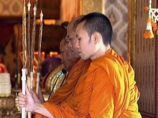 On binlerce kişinin katıldığı dini törende Kral Bhumibol Adulyadej’in hayattayken yabancı büyükelçileri kabul ettiği, yemek verdiği ve resepsiyonlar düzenlediği Chakri Maha Taht Salonu’nda Budist rahiplerce dualar edildi.