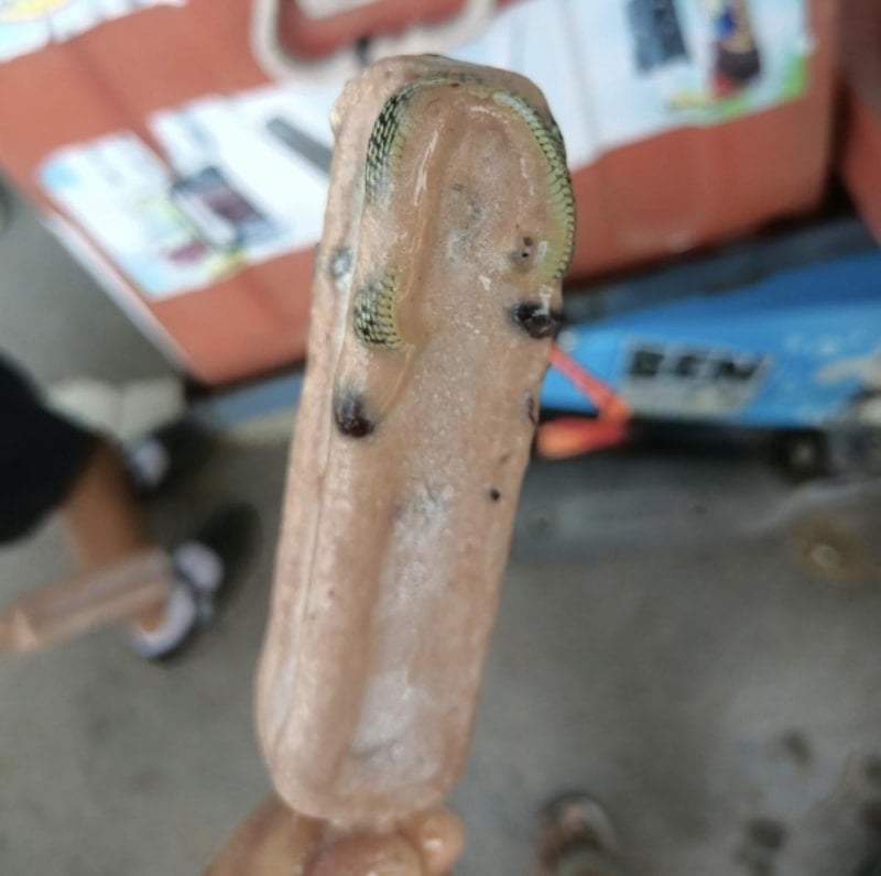 Ancak paketi açtığında dondurmasının içinde yılan kalıntıları ile karşılaştı.