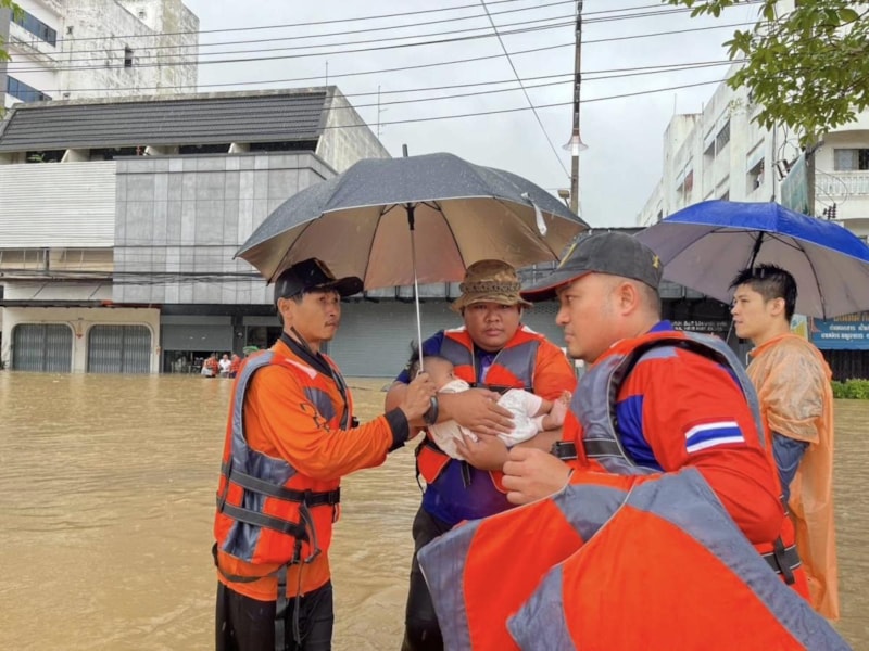 Tayland Kraliyet Ordusu; hava, kara ve deniz birlikleriyle arama-kurtarma ve tahliye çalışmalarını sürdürüyor. Yoğun yağış ve çamur nedeniyle ekiplerin ilerlemekte güçlük çektiği bildirildi.