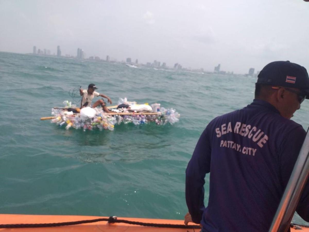 Tayland'ın Pattaya şehrinde "Somkiat Amca" olarak bilinen 53 yaşındaki evsiz adam, 7.5 kilometre uzaklıktaki Ko Lan Adası'na gitmek üzere pet şişelerden yaptığı botla dün sabah saatlerinde denize açıldı.
