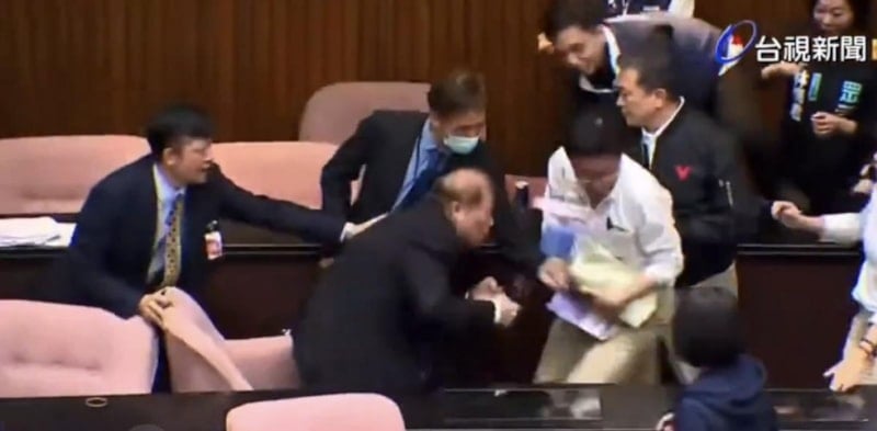 Tayvan'ın yeni lideri Lai Ching-te'nin göreve başlamasına günler kala mecliste yumrukların havada uçuştuğu bir kavga çıktı.