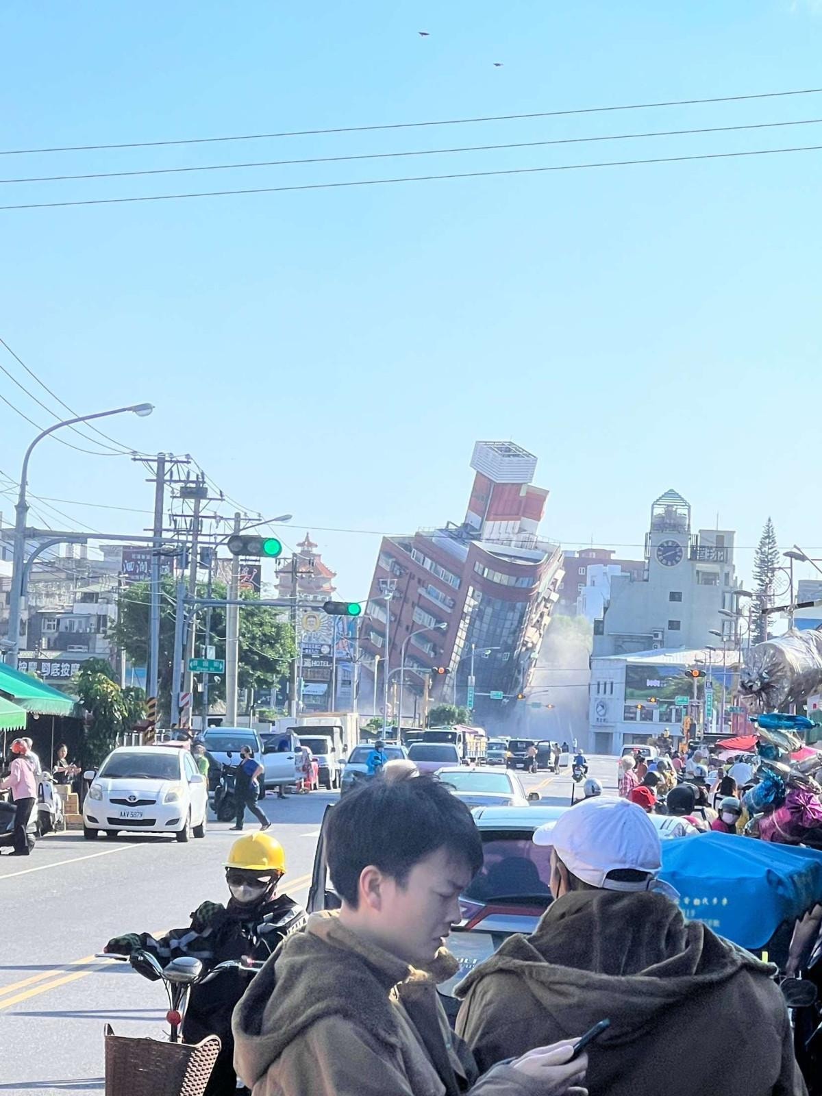 Hualien Şehri'nde Congquing ve Zhongshan yolunun köşesindeki çok katlı apartmanın ağır hasar gördüğü, birinci katının çöktüğü ve binanın büyük kısmının 45 derecelik açıyla eğildiği bildirildi.