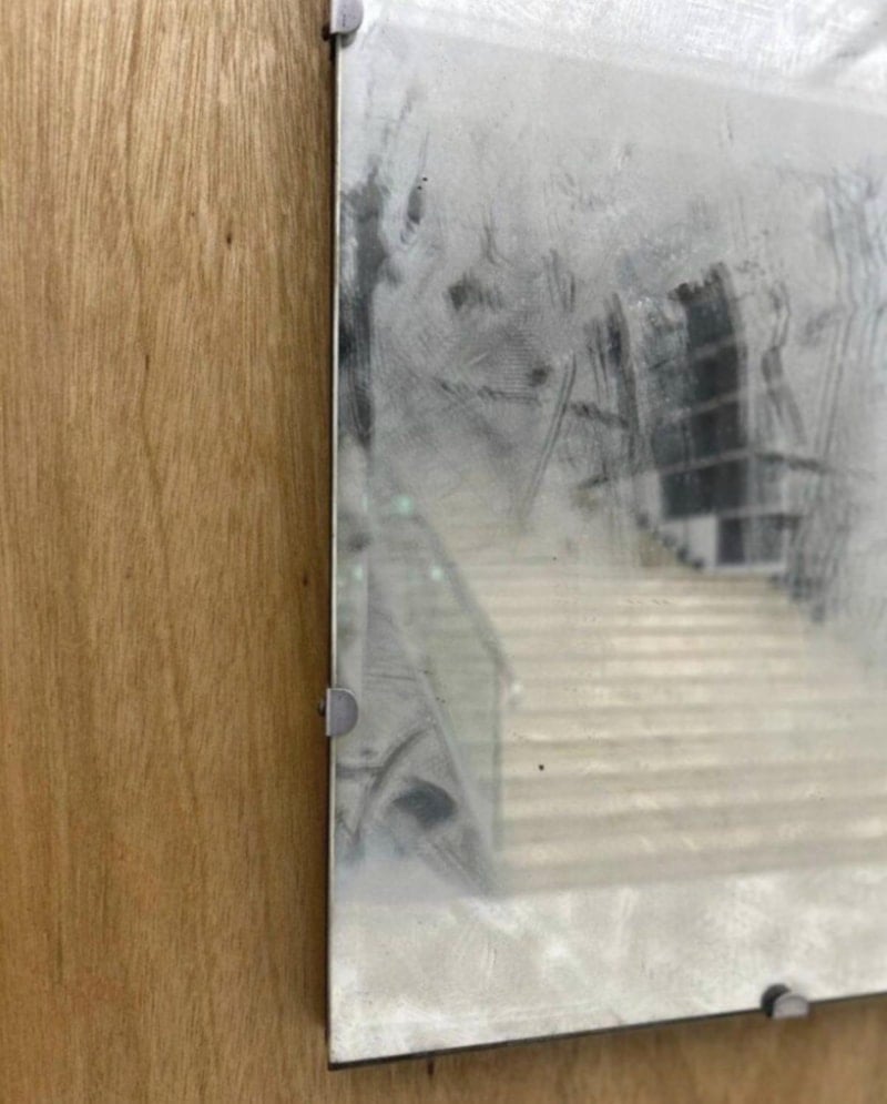 Temizlik sırasında gönüllü, aynanın kirli olduğunu düşünerek 40 yıllık toz tabakasını tuvalet kâğıdıyla sildi ve böylece eserin kavramsal bütünlüğünü tamamen ortadan kaldırdı.