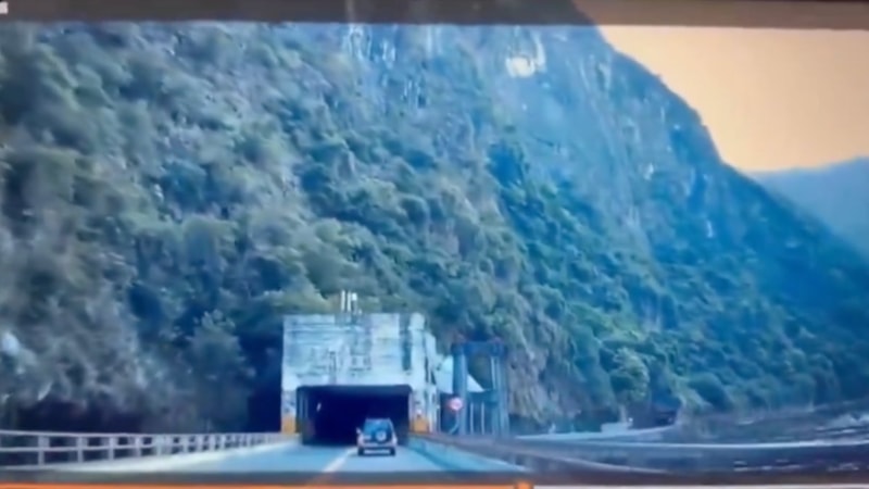 7,4 büyüklüğündeki depremde erken yarı siteminin verdiği uyarıyı dikkate alarak dağ yolundaki tünelde kalan sürücü, kopan kaya parçalarının altında kalmaktan kurtuldu.
