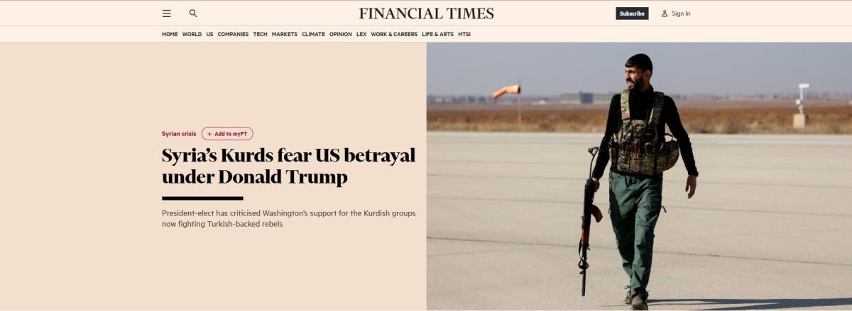 PKK/YPG'nin halen DEAŞ'lı tutukluların tutulduğu gözaltı merkezlerini ve DEAŞ üyelerinin aileleri için El Hol kampını işlettiği belirtilen haberde "Esad'ın devrilmesinden sonra Suriye'deki en etkili dış aktör olması muhtemel olan Türkiye, uzun süredir PKK/YPG'nin ABD özel kuvvetlerinin varlık gösterdiği Fırat nehrinin doğusunda kalmasında ısrar ediyor." ifadeleri yer aldı.