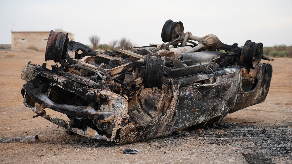 Münbiç'ten kaçan teröristler geride çok sayıda araç bırakırken, çatışma esnasında hasar gören ya da yanan araçların yol kenarlarında oldukları görüldü.