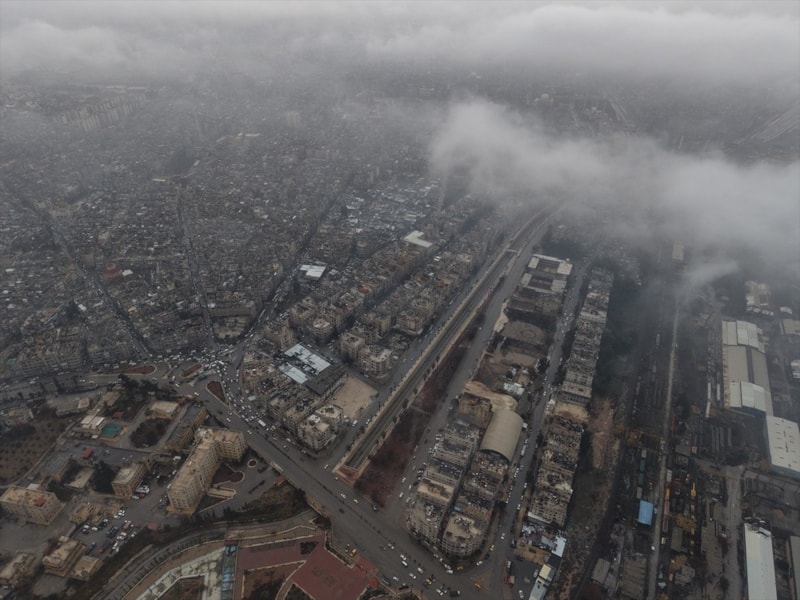 YPG/SDG’den arındırılan son mahalle olan Şeyh Maksud'da güvenliğin sağlanmasının ardından hayat normale dönmeye başlarken, mahalle havadan görüntülendi.