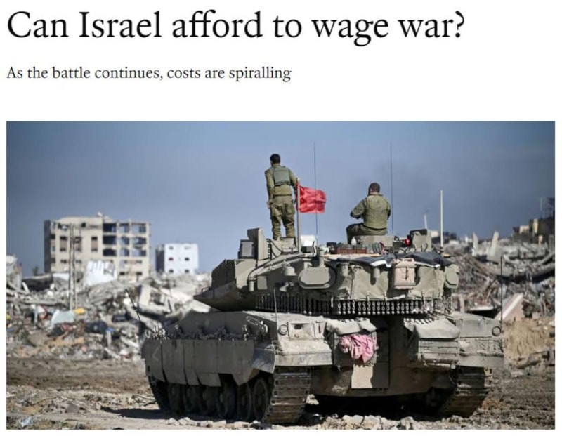 Dergi, İsrail'in savaşı sürdürmeye ekonomik gücünün yetip yetmeyeceğini sorguladığı bir yazıya imza attı.
