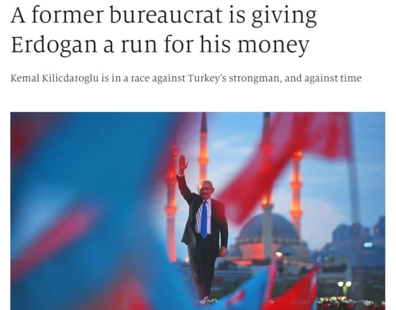 İngiltere merkezli medya organlarında 14 Mayıs seçimleri öncesi cumhurbaşkanı adayı ve CHP Genel Başkanı Kemal Kılıçdaroğlu'na destek niteliğinde analizler yer almaya devam ediyor.