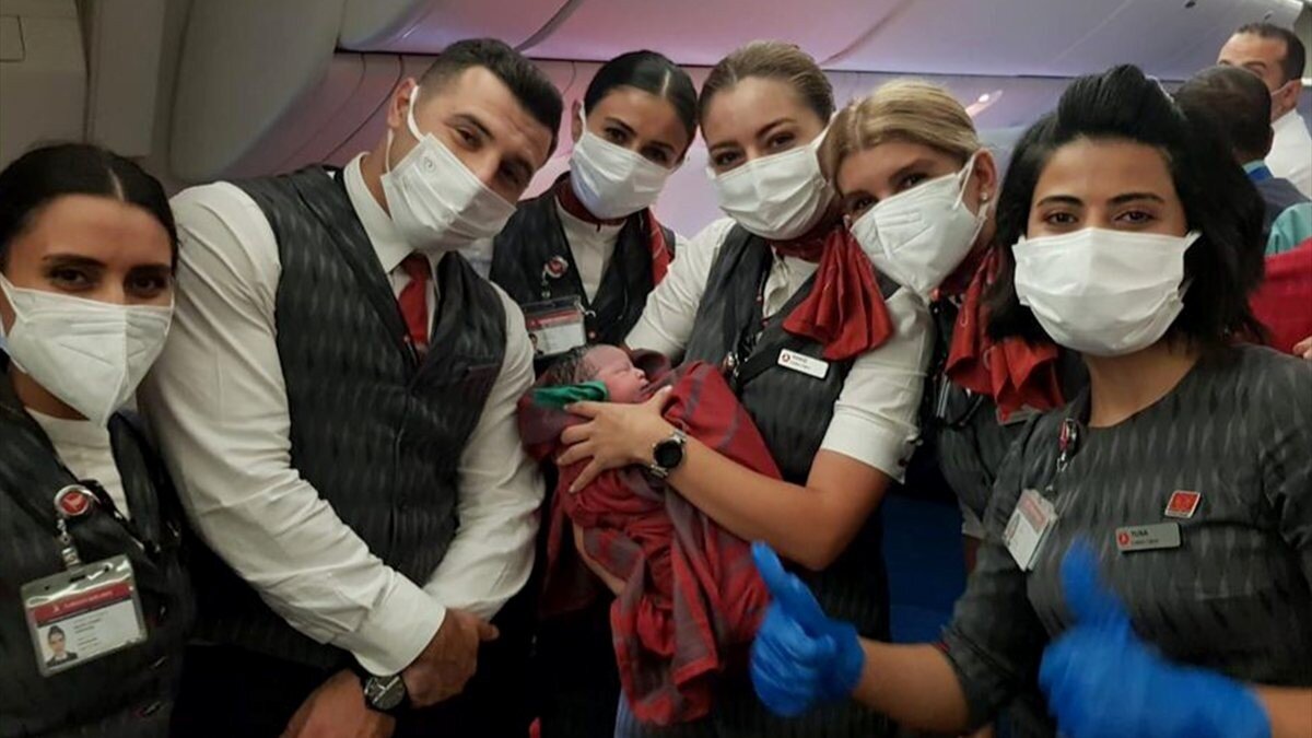 THY kabin ekiplerinin gerçekleştirdiği doğum sonrası bebeğin ve annenin sağlık durumunun iyi olduğu belirlendi.