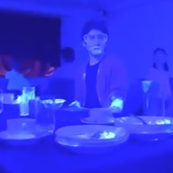 Kullanılan boya normal ışıkta görünmezken, yarım saat sonra ultraviyole ışık herkesin enfekte olduğunu gözler önüne serdi.