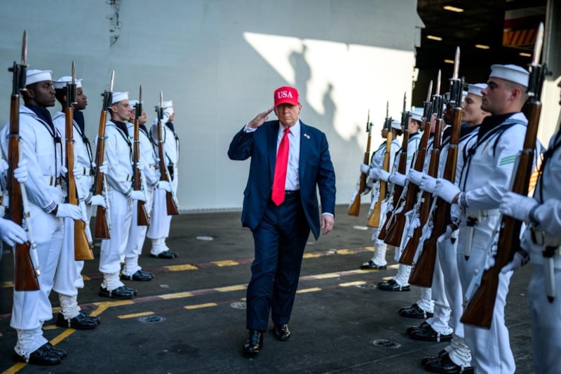 ABD Başkanı Donald Trump, Virginia eyaletindeki donanma üssünün bulunduğu Norfolk kentinde, ABD donanmasının kuruluşunun 250'nci yıl dönümü nedeniyle düzenlenen kutlama programına katıldı.