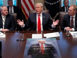 Dün masasına bu posteri koyan ABD Başkanı'nın, petrol nedeniyle İran'a yönelik yaptırımların devam edeceği düşünülüyor.