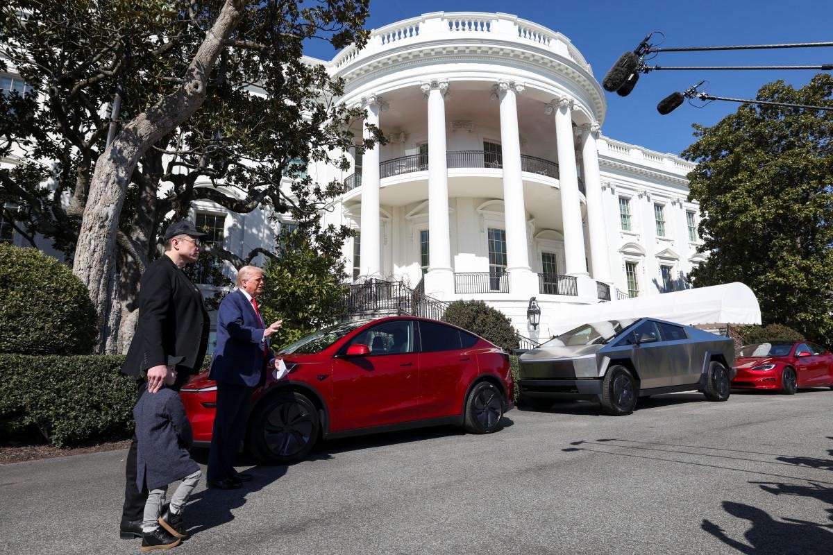 ABD Başkanı Donald Trump, Elon Musk ile beraber kameralar karşısına geçerek, Beyaz Saray'ın bahçesine getirilen Tesla araçlarla poz verdi.