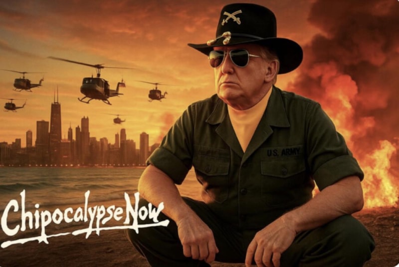 Trump, Truth Social hesabından yapay zekayla oluşturulan bir görsel paylaşıp Washington gibi Chicago'ya da ulusal muhafızları görevlendirileceğini ima etti.