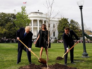 Macron ve Trump, ziyaretin ilk gününde Beyaz Saray’ın bahçesine “dostluk meşesi” adı verilen fidanı dikmişti.
