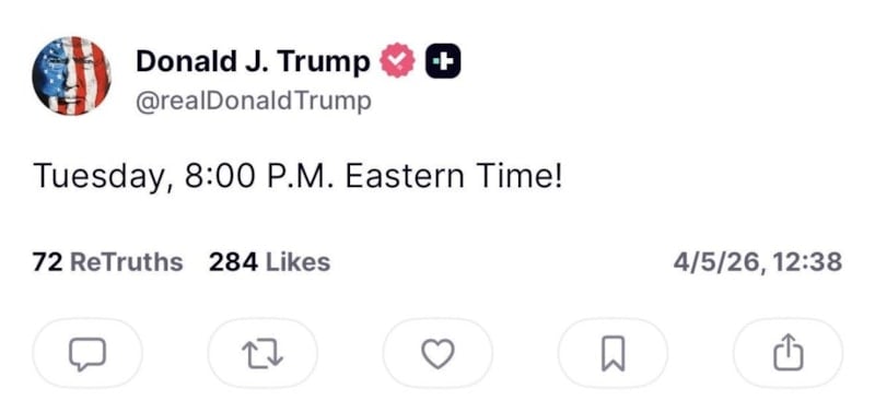 ABD Başkanı paylaşımında herhangi bir ayrıntı vermeksizin "Salı, Doğu Saati ile akşam 08:00!" ifadesini kullandı.