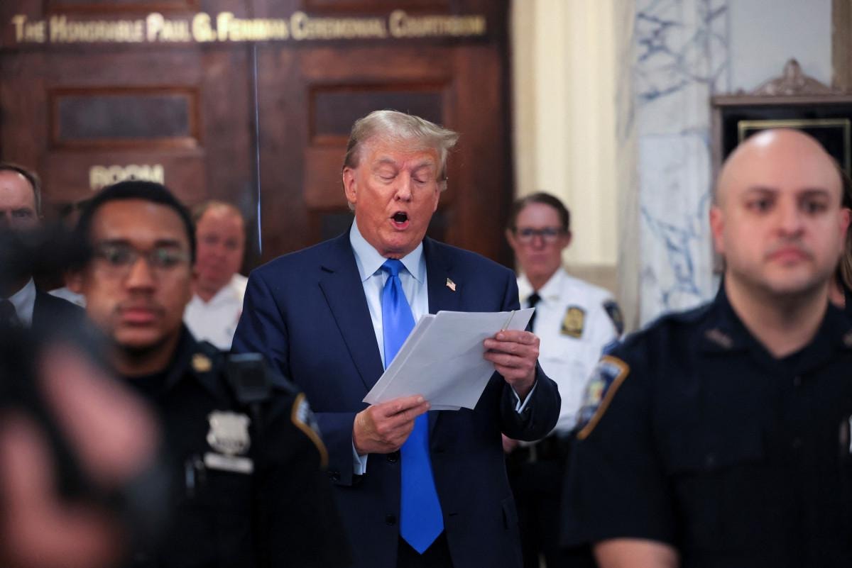 Manhattan mahkemesindeki duruşmaya gönüllü olarak geleneski ABD Başkanı Donald Trump, bina girişinde basın mensuplarına konuştu.