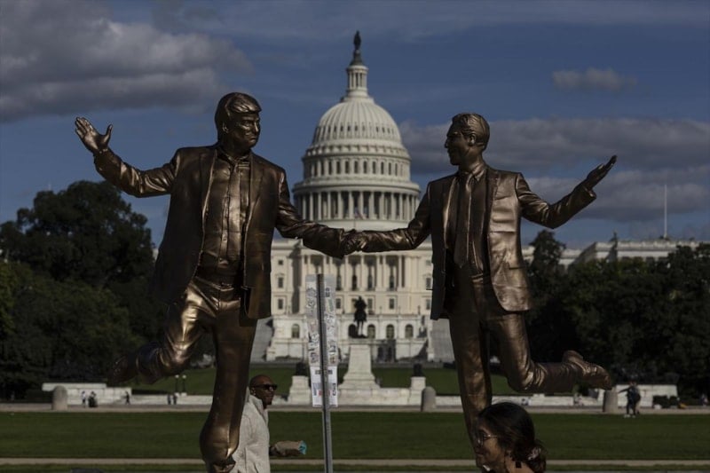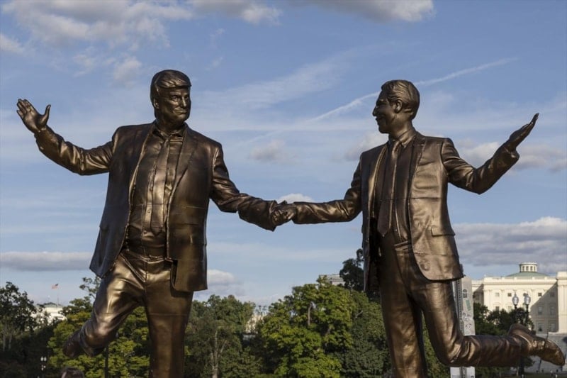 ABD’de, Başkan Donald Trump ile milyarder Jeffrey Epstein’ı el ele tasvir eden ve geçen hafta kaldırılan heykel, Kongre binası önüne tekrar yerleştirildi. Heykel, The Secret Handshake isimli grup tarafından yapılmıştı.