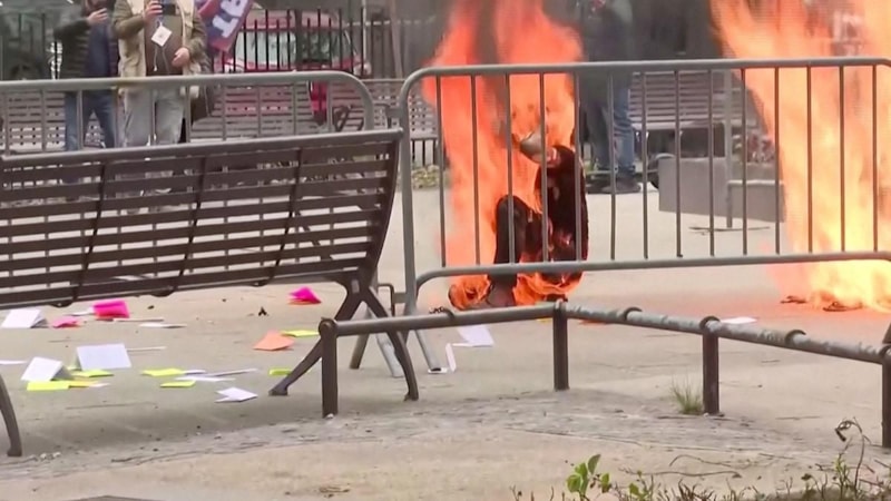 Eski ABD Başkanı Donald Trump'ın duruşmasının yapıldığı New York'taki mahkemenin önünde bir kişi, kendisini yaktı.