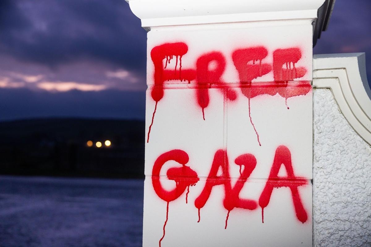 Kulüp binasına da kımızı boya püskürten aktivistler, gerçekleştirdikleri eylemin "ABD yönetiminin Gazze'yi etnik olarak temizleme niyetine doğrudan bir yanıt" olduğunu belirtti.