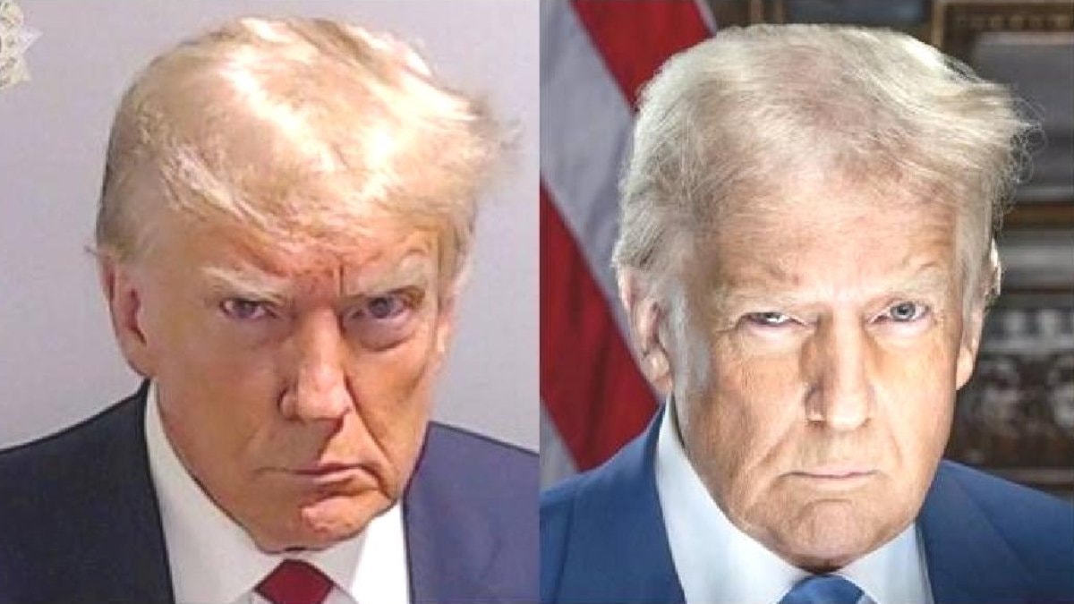 Donald Trump'ın yeni başkanlık dönemi için yayınlanan resmi portresinin bu sabıka fotoğrafına benzerliğiyle, kendisini eleştirenlere yanıt verdiği öne sürüldü.