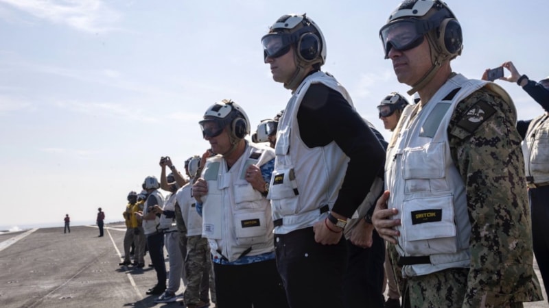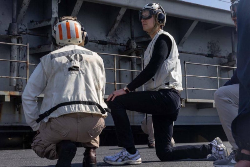 CENTCOM'un açıklamasına göre, Amiral Cooper, Witkoff ve Kushner ile Umman Denizi'nde seyreden uçak gemisindeki mürettebatı ziyaret etti.