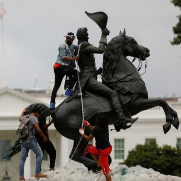 ABD'de George Floyd protestoları kölecilik, ırkçılık, sömürgecilikle bağlantılı tarihi kişiliklerin heykellerinin yıkılması furyasını beraberinde getirirken, Başkan Donald Trump heykel yıkanları tutuklatıp 10 yıl hapse atmakla tehdit etti.