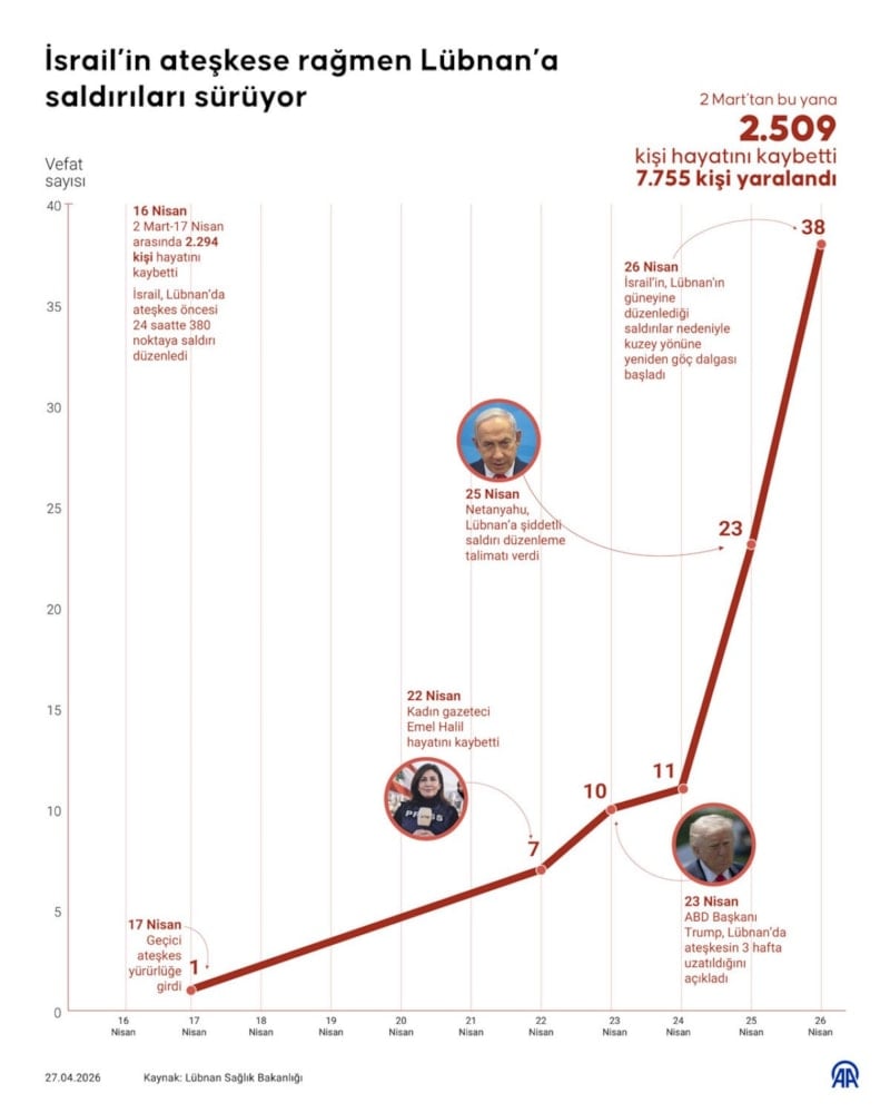 ABD Başkanı Donald Trump, Lübnan ile İsrail arasında 17 Nisan'da yürürlüğe giren 10 günlük geçici ateşkesin 3 hafta daha uzatıldığını duyurdu.