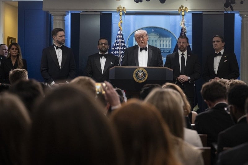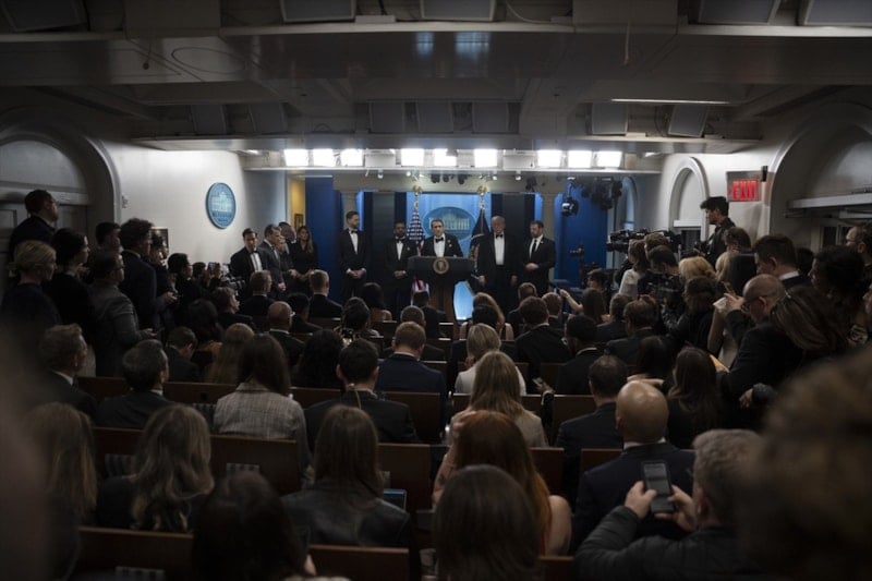 ABD Başkanı Donald Trump, kendisi ve kabinesindeki isimlerin katılımıyla Washington D.C'de düzenlenen Beyaz Saray Muhabirleri Derneği yemeğinde düzenlenen silahlı saldırının ardından Beyaz Saray'da basın toplantısı yaptı.