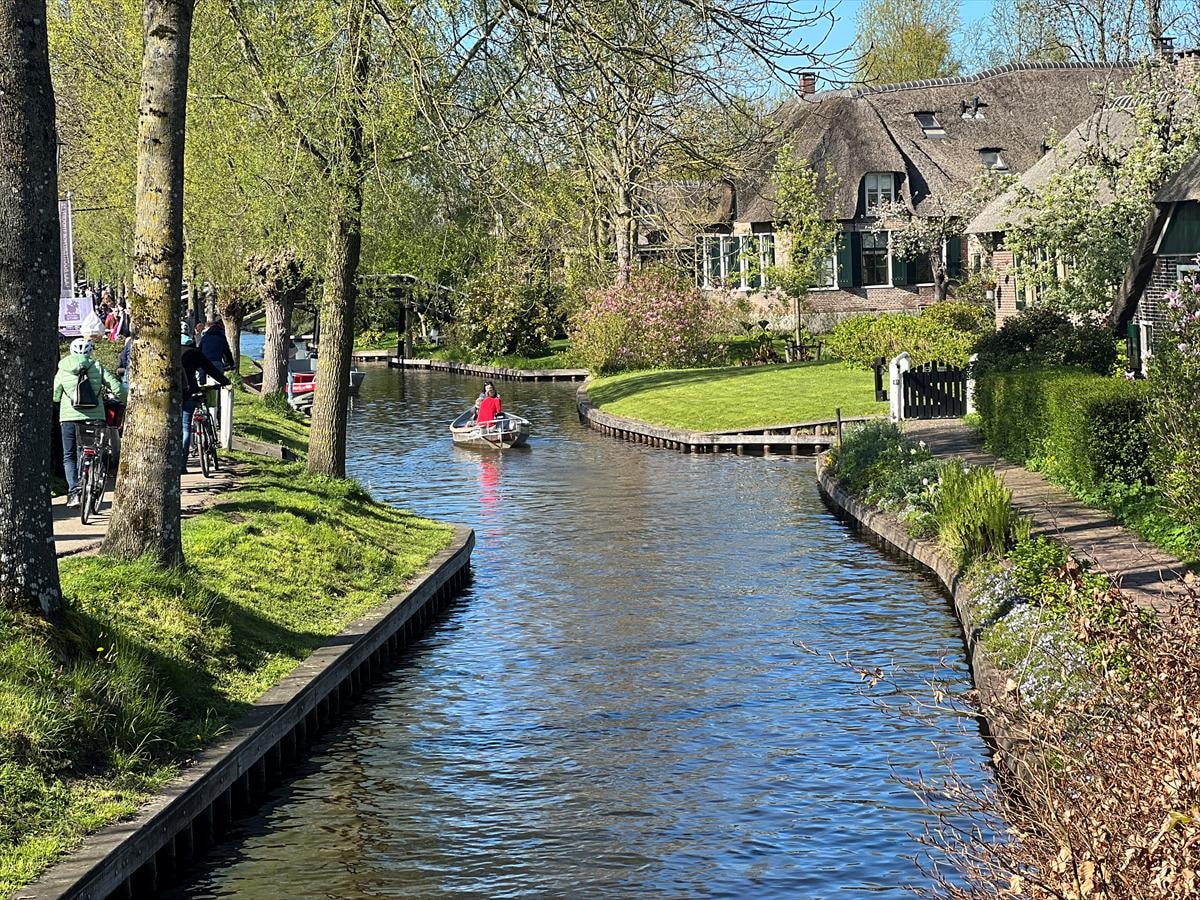 Yaklaşık 2 bin 600 kişinin yaşadığı Giethoorn, 176 ahşap köprüsü, dar kanalları, tarihi evleri, yemyeşil doğası ve rengarenk çiçekleriyle adeta masalları andıran bir dokuya sahip.