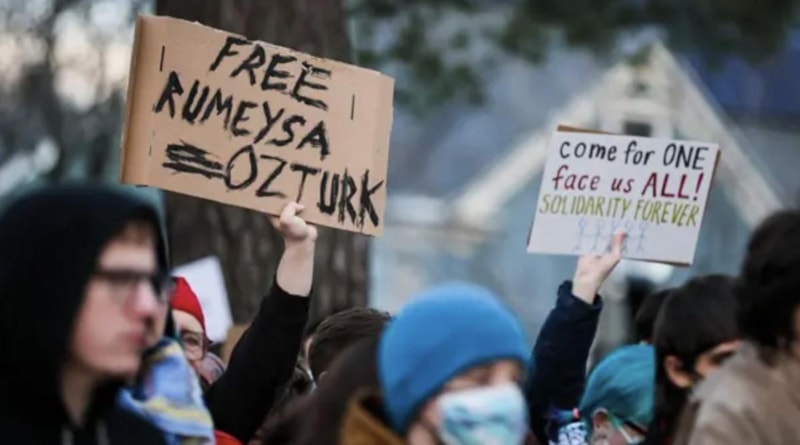 ABD'nin Massachusetts eyaletinde yüzlerce kişi, Tufts Üniversitesinde doktora eğitimi alan Türk öğrenci Rümeysa Öztürk'ün Gümrük Muhafaza Dairesi (ICE) görevlilerince gözaltına alınmasını protesto etti.