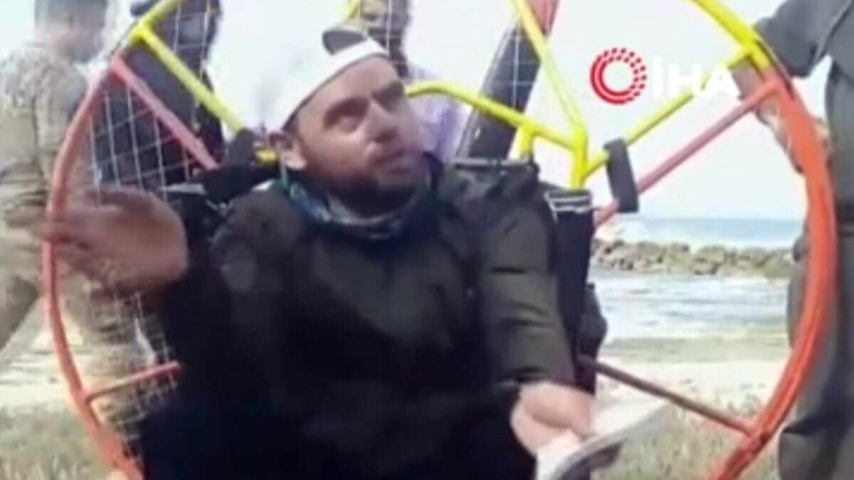 Zahrani bölgesindeki sahile planör olarak adlandırılan motorlu bir paraşüt iniş yaptı. O anlar, saniye saniye kaydedildi.