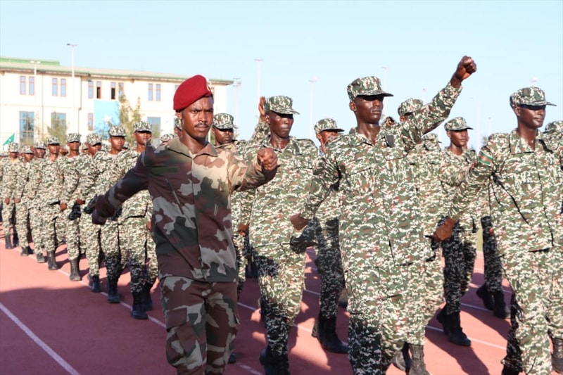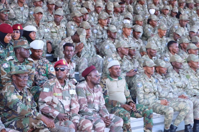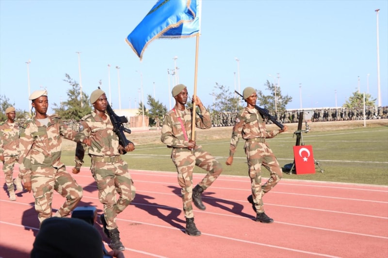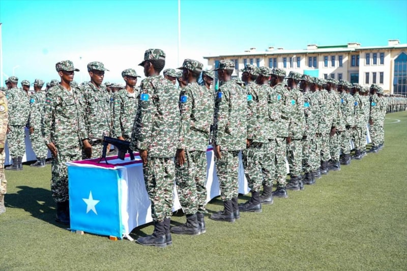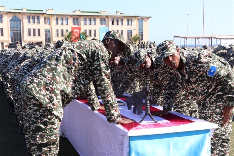 Eğitim alan 500 askerin göreve başlama törenine Somali hükümet yetkilileri, ordu temsilcileri ve Türk yetkililer katıldı.