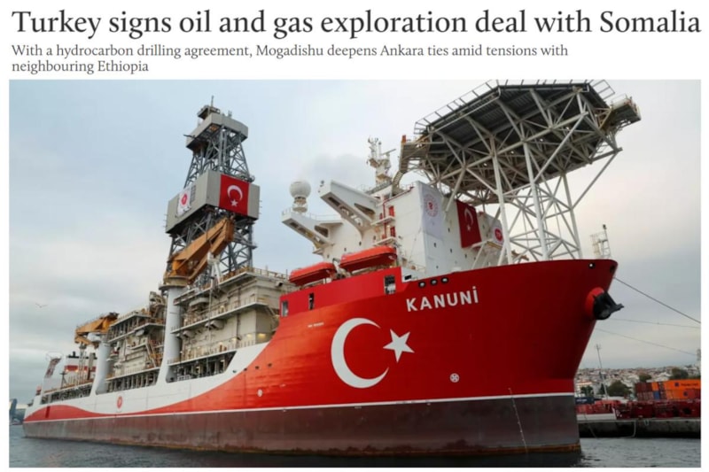 Middle East Eye, "Hidrokarbon sondaj anlaşmasıyla Mogadişu, komşu Etiyopya ile gerginlik yaşarken Ankara ile bağlarını derinleştiriyor." ifadelerini kullandı.